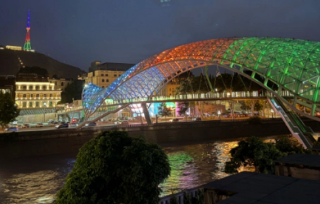 Tbilisidəki teleqüllə və "Sülh körpüsü" Azərbaycan bayrağının rəngləri ilə işıqlandırılıb