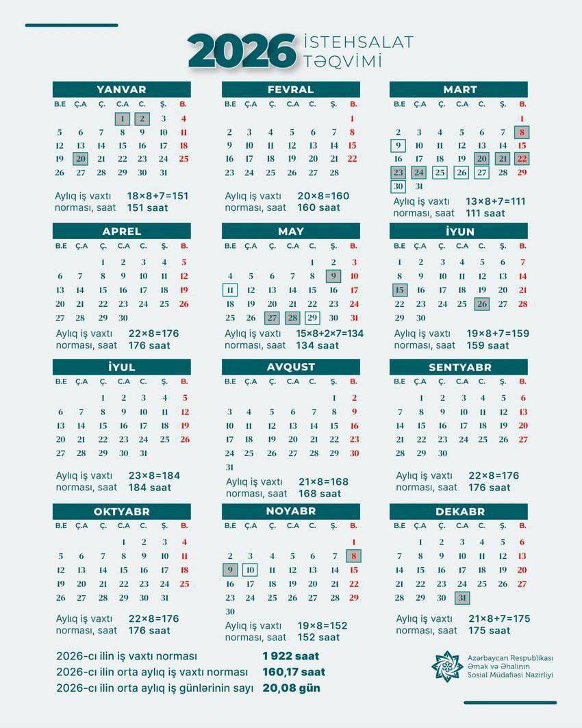 Gələn ilin qeyri-iş günləri elan edilib