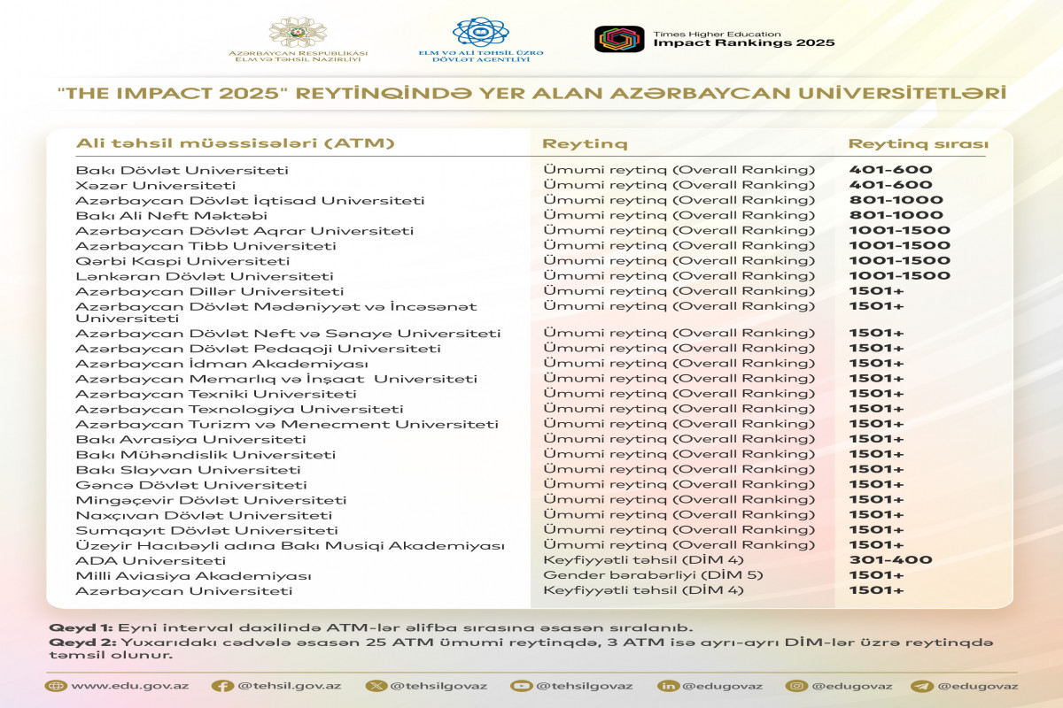 28 universitet “Times Higher Education Impact 2025” reytinqində təmsil olunub