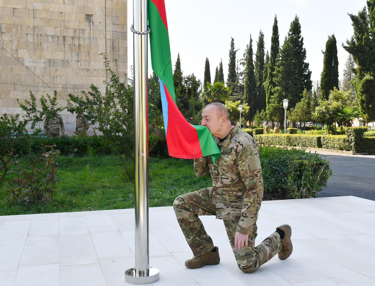 İlham Əliyev Xankəndidə Azərbaycanın Dövlət Bayrağını ucaldıb