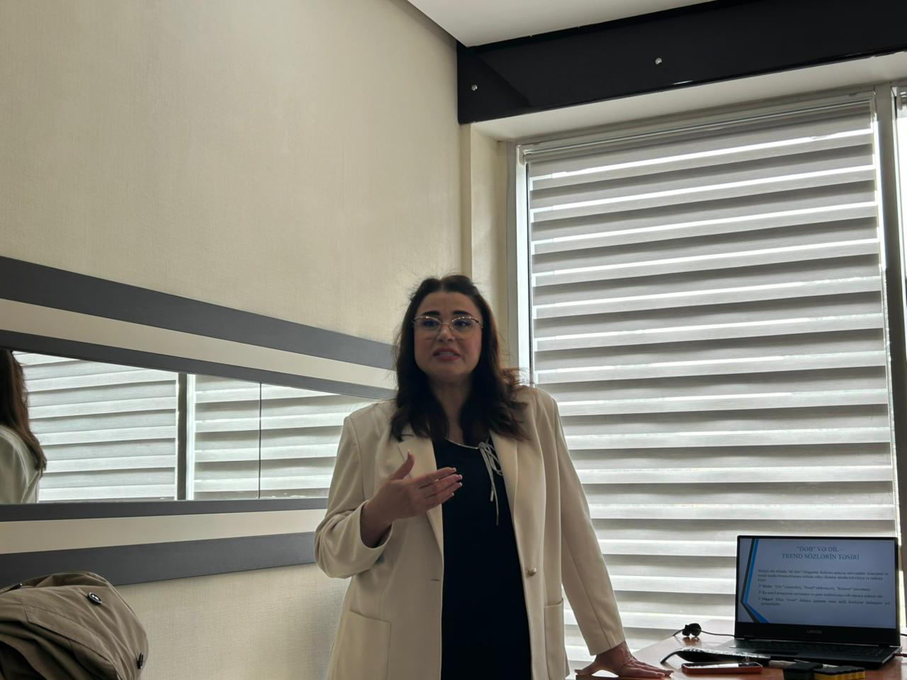 Təlimçi çıxışında bir neçə mühüm məqamı xüsusi qeyd etdi. Səmimiyyət təkcə sözlə deyil, mimikalar, baxışlar və davranışlarla nitqin ayrılmaz tərkib hissəsinə çevrilir. O,vurğuladı ki, səmimiyyət bütöv bir obraz kimi ötürülməlidir.