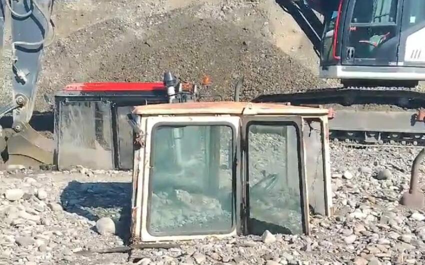 Ağdaşda traktorlar çınqılın altında qalıb