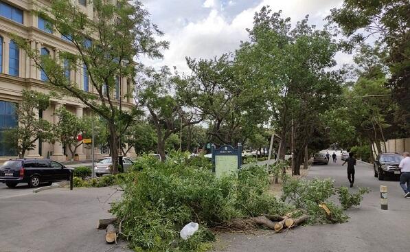 Güclü külək Bakıda 16 ağacı aşırıb